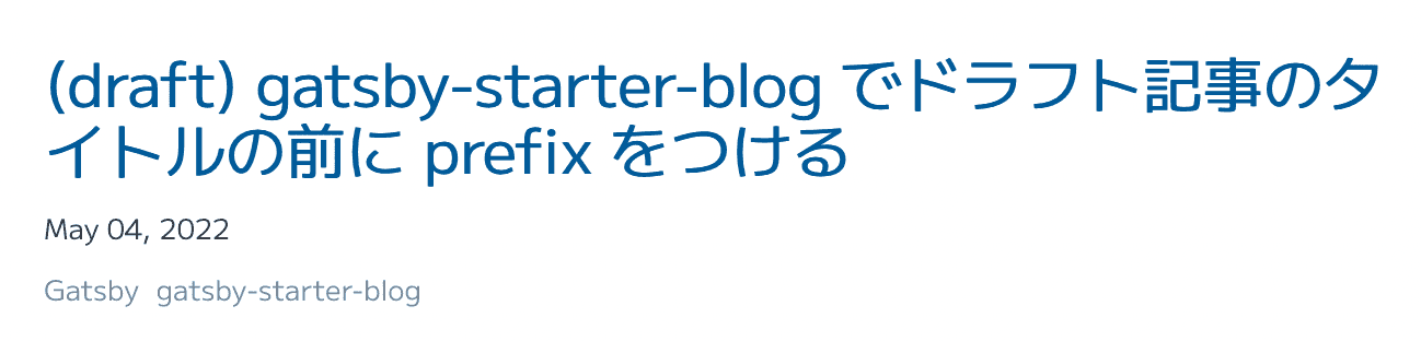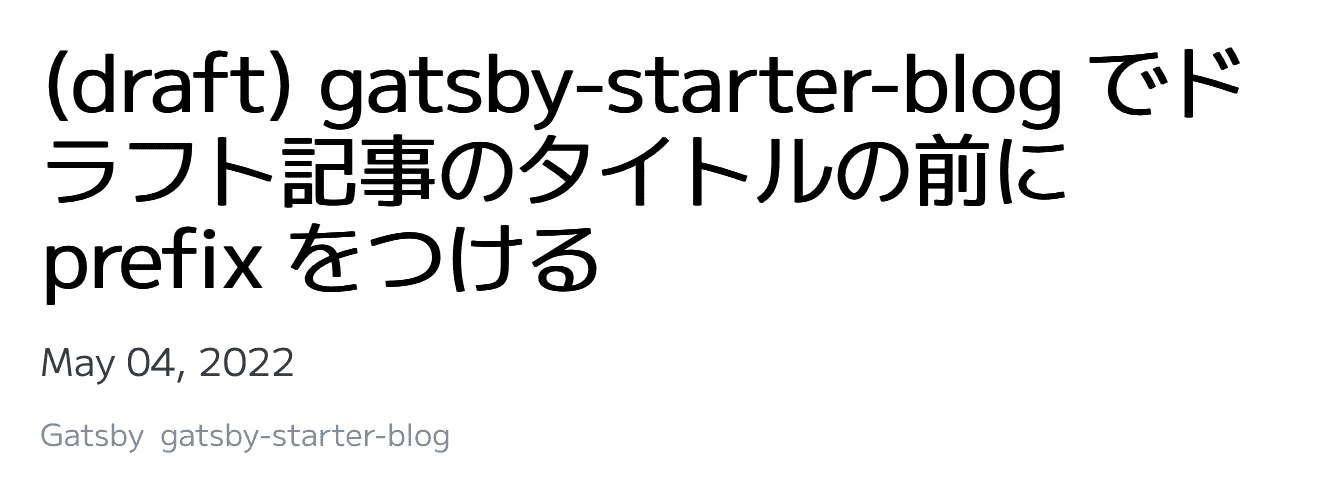 }で、タイトルを表示するところで draft が true の場合に prefix が付くようにする。